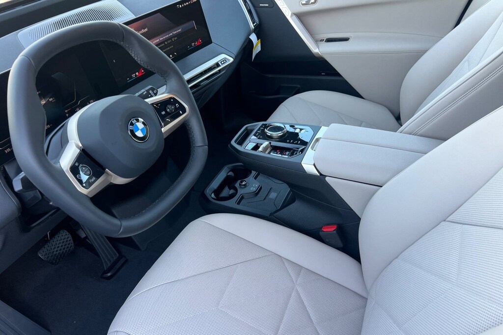 This BMW iX delivers a Electric engine powering this Automatic transmission. PREMIUM PACKAGE -inc: Live Cockpit Pro, HUD and video AR, Illuminated Kidney Grille, Parking Assistant Plus, Iconic Sounds Electric, PANORAMIC ECLIPSING ROOF, OYSTER, PERFORATED SENSATEC UPHOLSTERY.