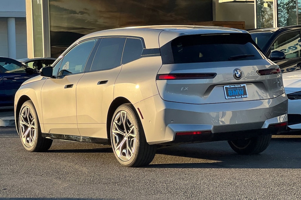 This BMW iX delivers a Electric engine powering this Automatic transmission. SPACE SILVER METALLIC, PREMIUM PACKAGE -inc: Live Cockpit Pro, HUD and video AR, Illuminated Kidney Grille, Parking Assistant Plus, Iconic Sounds Electric, PANORAMIC ECLIPSING ROOF.