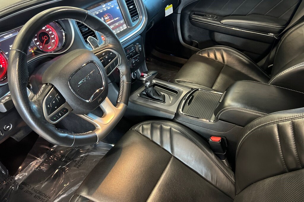 MANUFACTURER'S STATEMENT OF ORIGIN, LOCKING LUG NUTS, FRONT LICENSE PLATE BRACKET, ENGINE: 6.2L SUPERCHARGED HEMI V8 SRT (STD), Voice Recorder, Valet Function, Uconnect w/Bluetooth Wireless Phone Connectivity, Trunk Rear Cargo Access, Trip Computer, Transmission w/Driver Selectable Mode and AUTOSTICK Sequential Shift Control w/Steering Wheel Controls. This Dodge Charger has a strong Intercooled Supercharger Premium Unleaded V-8 6.2 L/376 engine powering this Automatic transmission.